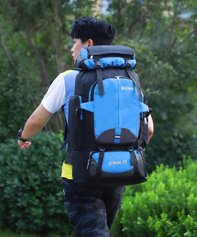 Рюкзак 70 л голубой универсальный экспедиционный спортивный туристический текстиль для пут...
