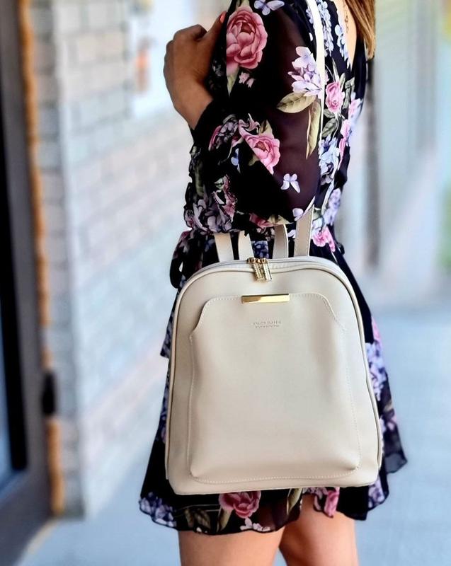 ФУРНИТУРА: золото РАЗМЕРЫ: Ширина по низу - 26,5 см, высота - 30 см, дно - 11,5 см + ручка + ремешок МАТЕРИАЛ: ЭКО кожа., подкладка - плотная ткань СОСТАВ: Два отделения и между ними карман-перегородка на молнии. Сумка-рюкзак сверху закрывается на молнию. В середине есть 2 открытых кармашка и кармашек на молнии. С тыльной стороны - карман на молнии. 💸 850 грн