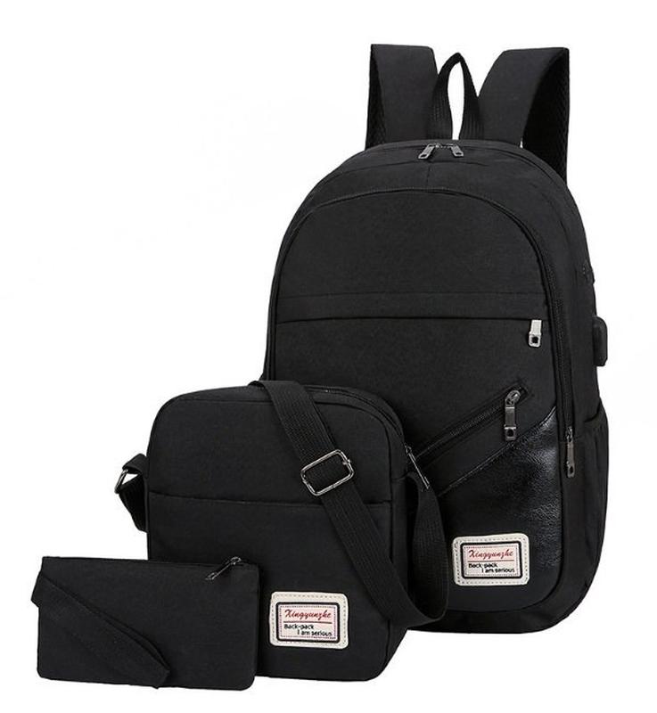 😍Комплект 3 в 1. Рюкзак + сумка + кошелек. Длина шлеек регулируется. Одне велике отделение + одно поменьше + 1 кармашек спереди + 2 по бокам. Размер сумки: 24*21см. Размер кошелька: 11*17см Размеры рюкзака: 42см.*30см.*13см USB в комплекті 💸Цена:645грн