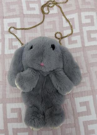 Стильная сумка-рюкзак в виде кролика. Натуральный мех. Ушки и лапки созданы из кожи. Состояние новой вещи Дэффекты отсутствуют.