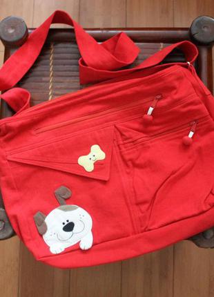 Симпатична сумка через плече для школи з 100% бавовни, можна прати в машинці В сумці 3 передніх кишені на блискавці 1 задню кишеню на блискавці 3 внутрішні кишені (1 на блискавці, два інших без застібки) Ремінець регулюється Розміри сумки: Ширина - 33 см Довжина - 26 см, Ширина дна - 9 см Готова відправити більше фото в повідомленнях :)