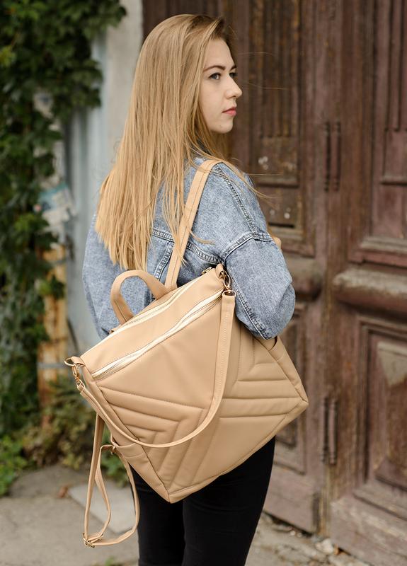 Женский рюкзак-сумка sambag trinity стропированный бежевый