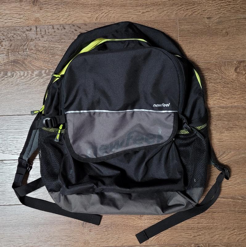 Рюкзак французского бренда Decathlon, цвет: сочетание черного и серого, объем рюкзака 30L, состав -100% полиэстер, производство Вьетнам, рюкзак имеет два основных отделения и одно дополнительное спереди,также боковые карманы из сетки.Замеры (ширина по низу 30.5, глубина 16, высота -44).Новый, без бирки, сток.