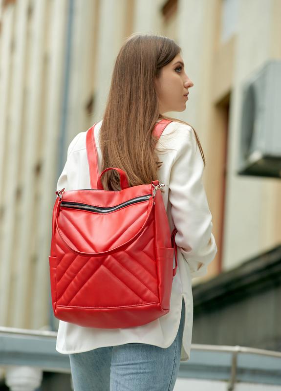 Женский рюкзак-сумка sambag trinity стропированный красный