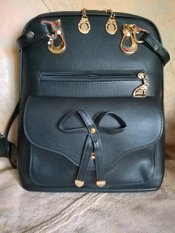 красивый новый рюкзак сумка. Держит форму. Розмір: вис.30 см, дно 12 см, довж. внизу 31 см по верху 25 см.