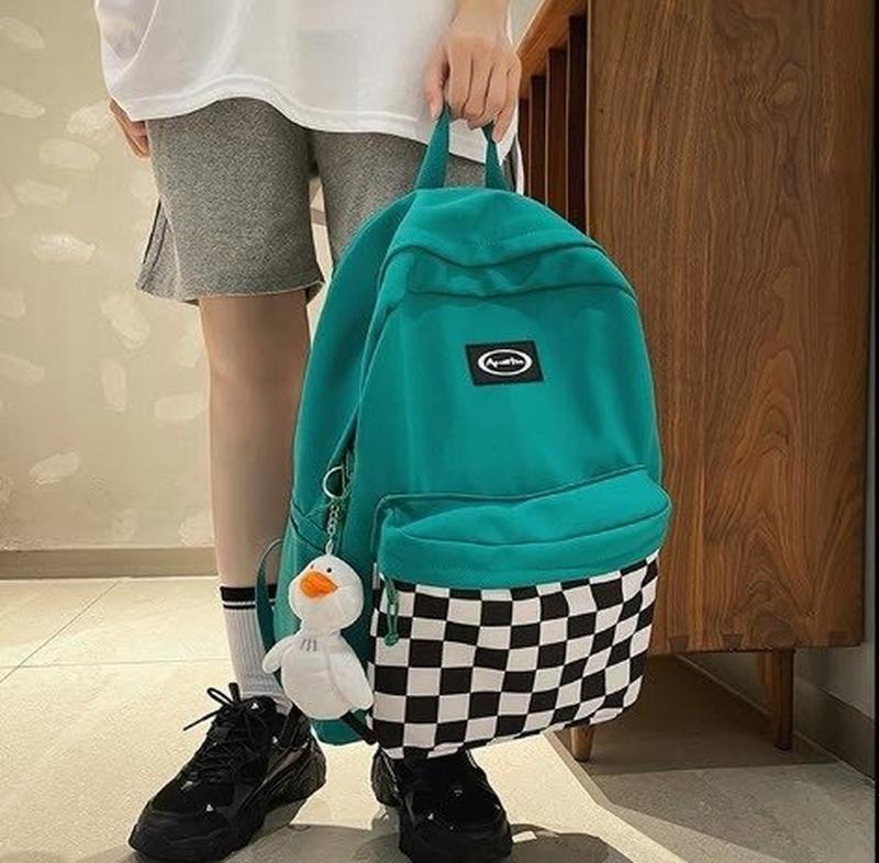 Вместительный тканевый рюкзак с карманом шахматную клетку