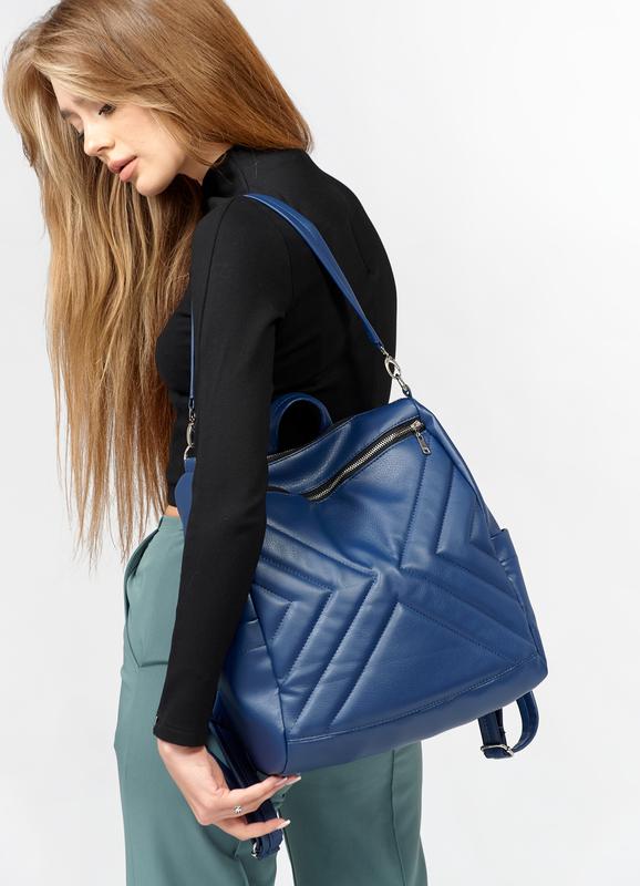 Рюкзак-сумка Trinity - это лучший вариант для людей, привыкших к стильной и активной жизни. Эта модель сочетает в себе разные стили, ведь Trinity можно носить как рюкзак и как сумку - это практично и удобно. Характеристики: Материал верха: новейшая экокожа повышенного уровня износостойкости (не менее 50 000 циклов по тесту Мертиндейла). Кожа водоотталкивающая, устойчивая к выцветанию, эластичная (не трескается при эксплуатации) и прочная на разрыв. Подкладка. Материал оксфорд средней плотности, прочный, устойчивый к царапин, легко чистится, нитки из него не выбираются. Благодаря соединению всех частей подкладки между собой, нагрузка на экокожу уменьшается и распределятся равномерно. Это продлевает срок службы кожи и швов извне. Фурнитура. Молнии типа YKK из надежного пластика. Бегунки металлические с фиксатором: рюкзак не откроется самостоятельно от нагрузок, а только рукой. Основное отделение на молнии. Шлейки. Плечевые ремни кожаные, надежно пришитые на планку по спинке. Присоединены к бокам кожаными треугольниками. Шлейки регулируются с помощью металлических регуляторов. Отдельная шлейка на карабинах, для удобного ношения на плече. Функциональность. Внутри рюкзака отдельное отделение под ноутбук до 15 дюймов (зависит от пропорций экрана и рамок вокруг него – при заказы уточняйте размер своего гаджета). Отделение надежно защищено пеноматериалом по всей высоте гаджета. С другой стороны, середине карман на молнии и один открытый карман.по бокам два открытых кармана для разных мелочей. Снаружи на спинке рюкзака есть один карман на молнии. Рюкзаки доступны во всех цветах.
