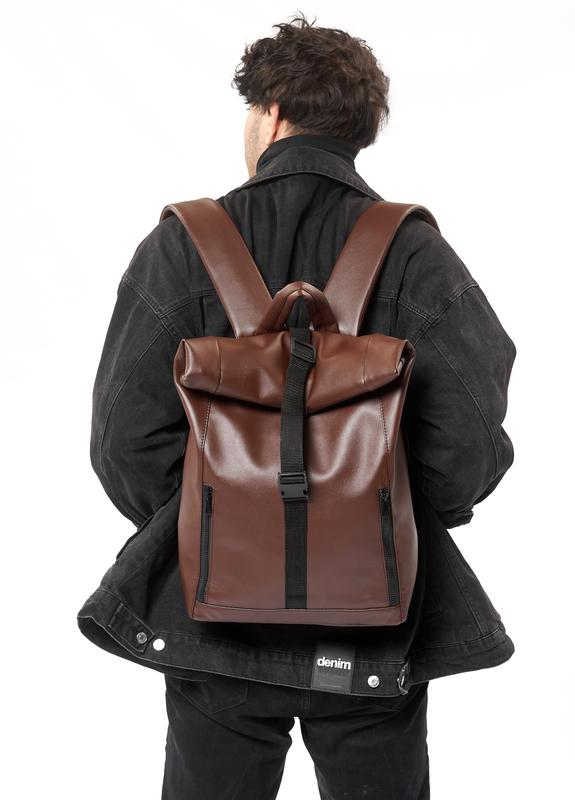 Рюкзак коллекции Roll создан для нужд города: прогулок, работы, учебы, спортзала, урбан путешествий, весеннего и летнего отдыха. Вместительный и функциональный помощник помещает все необходимые вещи на каждый день. Характеристики: Материал верха: новейшая экокожа повышенного уровня износостойкости (не менее 50 000 циклов по тесту Мертиндейла). Кожа водоотталкивающая, устойчивая к выцветанию, эластичная (не трескается при эксплуатации) и прочная на разрыв. Подкладка. Материал оксфорд средней плотности, прочный, устойчивый к царапин, легко чистится, нитки из него не выползают. Благодаря соединению всех частей подкладки между собой, нагрузка на экокожу уменьшается и распределятся равномерно. Это продлевает срок службы кожи и швов извне. Фурнитура. Молнии типа YKK из надежного пластика. Бегунки металлические с фиксатором: рюкзак не откроется самостоятельно от нагрузок, а только рукой. Установлен один магнит, благодаря чему рюкзак сверху всегда держит форму как на фото. Ременная лента с фастексами регулируется с увеличением высоты рюкзака. Основное отделение на молнии. Шлейки. Плечевые ремни кожаные, надежно пришитые на планку по спинке. Присоединены к бокам кожаными треугольниками. Длина регулируются с помощью трехщеловки. Функциональность. Снаружи рюкзака спереди два вертикальных кармана на молнии.Внутри рюказака отдельное отделение под ноутбук до 14 дюймов (зависит от пропорций экрана и рамок вокруг него - при заглажены уточняйте размер своего гаджета). С другой стороны, карман карман на молнии и один открытый карман. Снаружи на спинке рюкзака один карман на молнии. Размер: 41*30*16 в свернутом виде (см. главное фото), в максимально развернутом виде габариты рюказака складывают 54*30*16(см. дополнительные фото). Рюкзаки доступны во всех цветах.