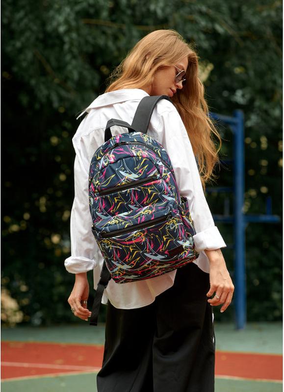 Артикул: 25058707 Женский рюкзак Sambag Zard LKTn с принтом "ABSTRACT" Цена 1289 грн Рюкзак коллекции Zard идеально подойдут для активных людей, которые не привыкли терять ни секунды. Они пригодятся, как для странствий так и для прогулок с друзьями, походов в спортзал, учебы. Выглядят на спине опрятно и при этом мегавместительные: вода, одежда, личные, любые безделушки необходимы для условий города. Характеристики: Материал верха: Износостойкий и влагонепроницаемый оксфорд. Спинка уплотнена специальным пеноматериалом - держит форму. Подкладка. Материал оксфорд средней плотности, прочный, устойчивый к царапин, легко чистится, нитки из него не выползают. Благодаря соединению всех частей подкладки между собой, нагрузка на экокожу уменьшается и распределятся равномерно. Это продлевает срок службы кожи и швов извне. Фурнитура. Молнии типа YKK. Бегунки металлические с фиксатором: рюкзак не откроется самостоятельно от нагрузок, а только рукой. Основное отделение на молнии. Шлейки. Плечевые ремни, надежно пришитые на планку по спинке. Присоединены к бокам треугольниками. Длина регулируются с помощью трехщеловки. Функциональность. Снаружи спереди рюкзака два кармана: один большой карман и меньше над ним, оба на молнии. Внутри отдельное отделение под ноутбук до 14 дюймов (зависит от пропорций экрана и рамок вокруг него – при заглаженных уточняйте размер своего гаджета).С другой стороны середины карман на молнии и один открытый карман. Снаружи на спинке рюкзака есть два дополнительных кармана на молнии, один из которых под формат А4. По бокам два открытых кармана для разных мелочей. Размер: 46*28*13 Рюкзаки доступны во всех цветах.
