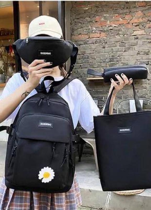 Арт 358 Цена 549 грн Стильный набор из 4-х единиц Цвета в наличии Мятный., красный, чёрный, розовый Одно большое отделение с мягким, внутренним карманом. Имеет мягкие спинку и шлейки. В комплекте идет сумочка , бананка , пенал Детали: - производитель - Фабричный Китай - размер рюкзака : 43*28*11 см; Размер сумки 33*30 Размер бананки 14*25 - наружный передний карман; - сзади на спинке есть карман на молнии - внутренний карман ; - регулируемые лямки; - материал - плотный коттон Формат А4- помещается. Стиль - городской, для школы.