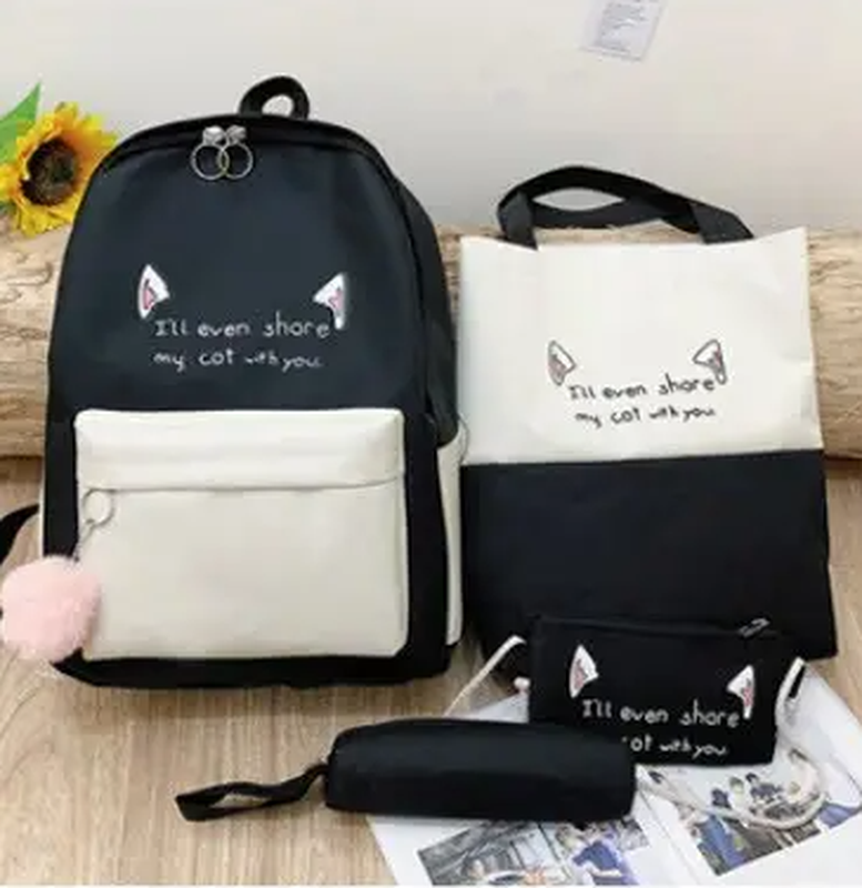 Данная модель рюкзака разработана специально для удобного пользования в повседневный день, так же подчеркнет Вашу оригинальность в праздничный. Аккуратный стиль, вместительность, красивый дизайн, что еще можно сказать? Вы все видите сами на фото. В комплекте идет рюкзак, клатч, косметичка, пенал. Цвет: желтый, черный, зеленый, розовый Размер: рюкзак 37*28*10см, сумка 31,5*31,5*5см, барсетка 23*27см, пенал 18*5*3см Материал: ткань Помпон в комплекте