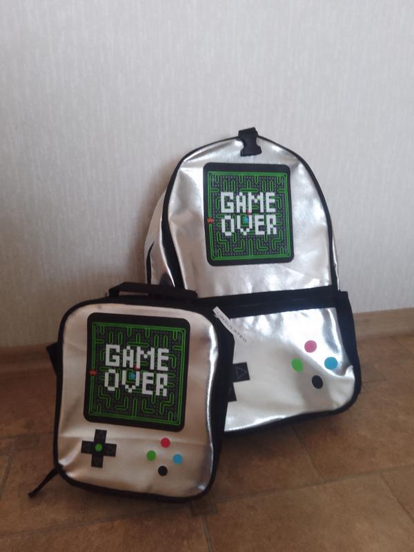 Шкільний ранець. Срібний колір. Два незалежні відділення. З боків кишені. Кріпиться менша сумочка. Можна використовувати як великий пенал, або під ланч-бокс. Висота ранця - 45 см додаткова сумка: 24х22см