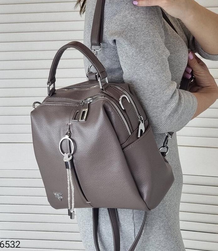Арт.: 6532# Материал: эко кожа Размер: 26*23*12 см Съемные плечевые ремни. Можно носить как сумку Цвет: серый, черный ___Стоимость 1001 грн__