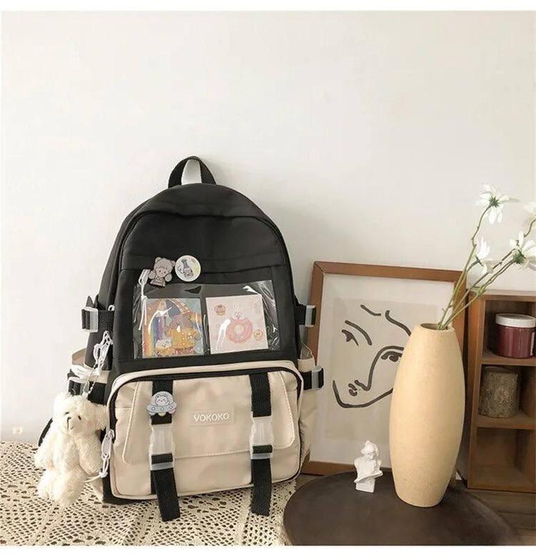 Рюкзак с брелком мишка стильный повседневный школьный для девочки teddy beer(тедди) чёрног...