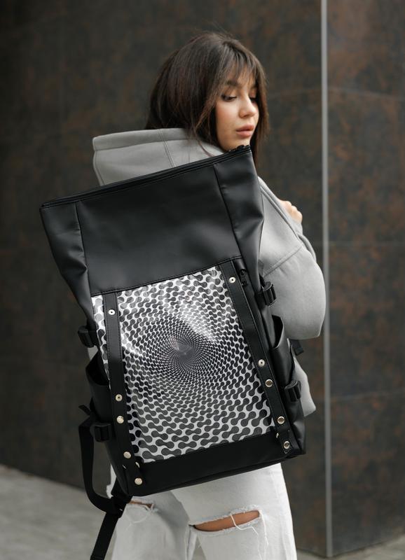 Женский рюкзак sambag rolltop hacking черный принт "illusion"