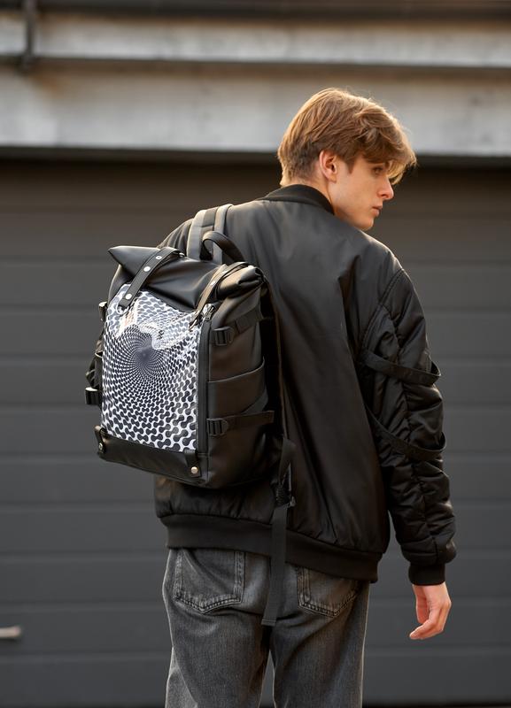Мужской рюкзак sambag rolltop hacking черный принт "illusion"