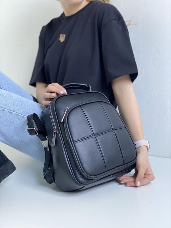 ⬆️⬆️ Новинка🥰 код 4255 Рюкзак-сумка, эко кожа, ременьки регулируются, трехразделение. 27 х 15 х 26 см Цвет - черный 🥰 1250 грн