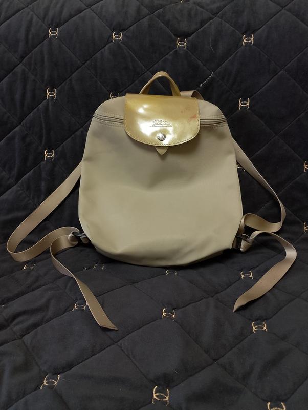 Longchamp рюкзак оригінал Дуже крутий, гарний колір, лакова частина натуральна. Є на лаку плями рожеві, таке з лаком часто буває, на жаль. Нема кінчика собачки, загубилася. Має незначні сліди користування, плямки, кути трохи потерті. Заміри: Висота 36 Ширина 32
