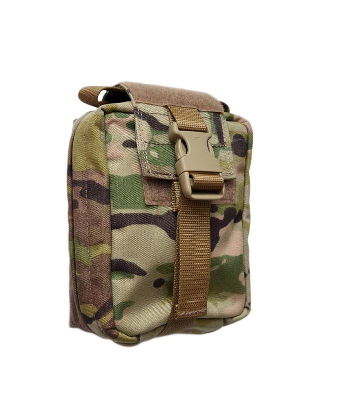 Материал: Cordura 500d. (США NIR) Цвет: Multicam. Сливной люверс Размеры: 16х12х8 см. Внутри на стенках расположены плоские карманы, на которых нашиты шлёвки из эластичной ленты - для вертикальной фиксации предметов на фронтальной стенке и горизонтальной на тыльной.