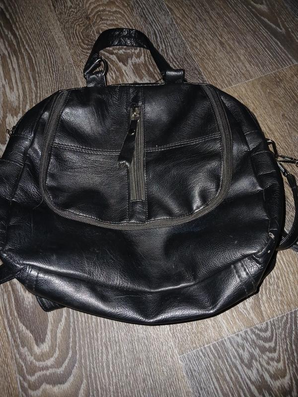 рюкзак черного цвета, имеется один большой отдел, один маленький в середине, и мебель извне, можно носить как наплечник так и сумку, бретельки можно перестегивать