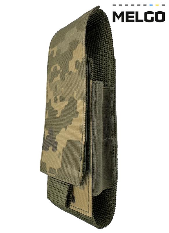 MELGO Hemostatic Tourniquet Pouch Oxford 1000 D Pixel ММ-14 Подсумок под турникет или схожего по габаритам снаряжения. Конструкция - Подсумок представляет собой небольшую базовую конструкцию из полиэстеровой ременной ленты, шириной 5 см и эластичной резинкой шириной 8 см, которая зажимает и надежно фиксирует кровоостанавливающий жгут внутри подсумка. - Лицевая сторона обшита тканью в цвет стропы. - На тыльной части расположен интэрфейс MOLLE с одной фиксирующей кнопкой. Используемые материалы - ткань Oxford 1000 D - 100% полиэстер - ременная лента - 100% нейлон - липучка - 100% нейлон Класс А - резинка - 100% нейлон