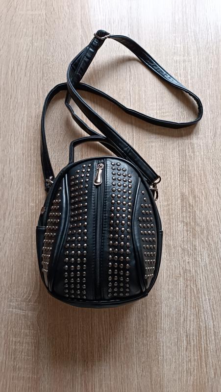 Сумка-через плечо-рюкзак. Лямки сзади перекидываются на другие крепления и можно носить так и так. На этих креплениях сзади немного сдерт кожзам, на фото показала. Ещё из недостатков: поломался держатель "собачки", но она и так застёгивается и расстегивается, молния в отличном состоянии. На дне немного "вздулся" кожзам, на фото тоже есть. Подкладка в идеале. Замеры: 25*22