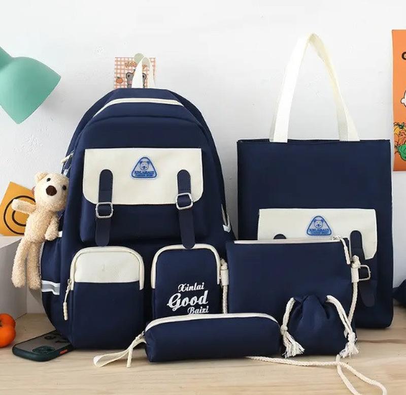 Женский рюкзак комплект 5 в 1 имеет несколько особенностей: - В середине рюкзака есть одно отделение, разделенное на две части. Это позволяет удобно организовать и разделить вещи. - На передней части рюкзака есть карманы. Это предоставляет дополнительное пространство для хранения и легкий доступ к мелочам. - Рюкзак поставляется в комплекте с брелоком мишкой и значками. Это милые аксессуары, которые придают рюкзаку уникальный стиль. - Материал рюкзака изготовлен из полиэстера. Полиэстер обладает хорошей прочностью и устойчивостью к износу, что делает рюкзак долговечным. Размеры этого рюкзака: - Высота: 45 см - Ширина: 32 см - Глубина: 14 см Этот рюкзак предлагает практичное использование с удобным внутренним разделением, дополнительными карманами для организации вещей, а также поставляется вместе с аксессуарами для добавления стиля.