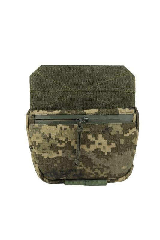 Напашник - сумка Колір: піксель Тканина: кордура 1000 Система кріплення: моллі Розмір плити або кевлара в напашнику: 23х15 см Вага виробу: 300 г Особливості данного виробу - Встановлена попереду додаткова система молі - водозахисна застібка - кріплення дл турнікету - можливість вставляти балістичний захист