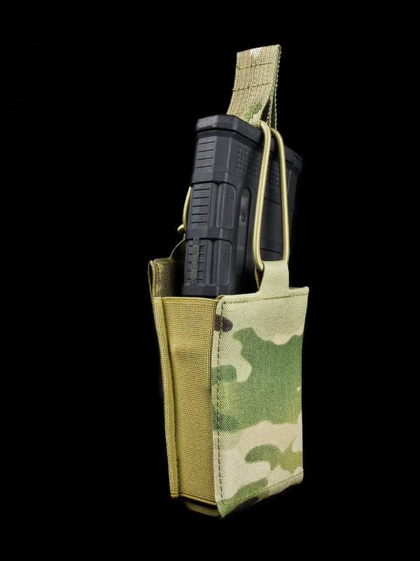 Корпус виконано з ламінованої кордури, посиленої гумки та литої поліамідної вставки. Форма вставки розроблена таким чином, аби магазин добре тримався у підсумку. Матеріали: - Squadron® 500/1000 Denier Cordura®Fabric - Multicam®/Coyote, USA - Посилена гумка, Coyote, Italy