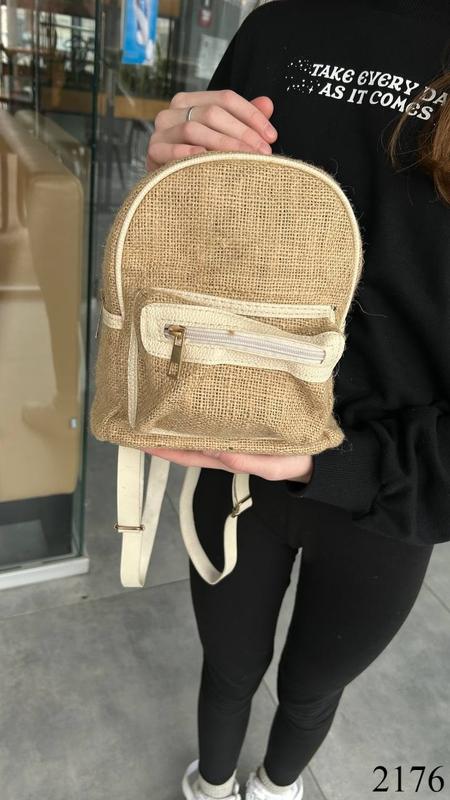 НОВИНКА Код: 2176 Дитячий рюкзак виконаний під емітацію в"язаної соломи! Має одне основне відділення. Розмір: 21*17. Виробництво: Туреччина. Текстиль/ЕкоШкіра. Колір: Бежевий.