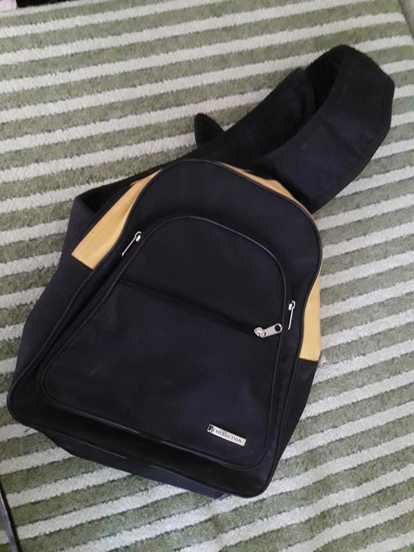 Рюкзак через одне плече, ремен на липучці. Одне велике відділення + дві кишені зовні і один ззаду, кишеню для телефону на ремені. Розмір висота 32см, ширина 29см. Стан добрий.