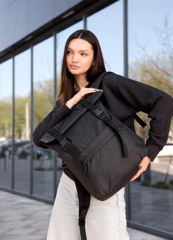 Рюкзак коллекции Roll создан для нужд города: прогулок, работы, учебы, спортзала, урбан путешествий, весеннего и летнего отдыха. Вместительный и функциональный помощник помещает все необходимые вещи на каждый день. Характеристики: Материал верха: оксфорд. Спинка держит форму: уплотненная пеноматериалом и снаружи выполнена из вентиляционного материала AirMesh 3D. Подкладка. Материал оксфорд средней плотности, прочный, водостойкий, устойчивый к царапин, легко чистится, нитки из него не выползут. Благодаря соединению всех частей подкладки между собой, нагрузка на экокожу уменьшается и распределятся равномерно. Это продлевает срок службы кожи и швов извне. Фурнитура. Молнии из надежного пластика. Бегунки металлические с фиксатором: рюкзак не откроется самостоятельно от нагрузок, а только рукой. Установлены два магнита, благодаря чему рюкзак сверху всегда держит форму как на фото. Ременная лента с фастексами регулируется с увеличением высоты рюкзака. Основное отделение на молнии. Шлейки. Плечевые ремни из Оксфорда, мягкие, надежно пришитые на планку по спинке. Присоединены к бокам кожаными треугольниками. Длина регулируются с помощью трехщелковки. Функциональность. Снаружи рюкзака спереди один карман. Два кармана по бокам на молнии. Внутри рюказака отдельное отделение под ноутбук до 14 дюймов (зависит от пропорций экрана и рамок вокруг него – при заявлении уточняйте размер своего гаджета). Отделение надежно защищено пеноматериалом по всей высоте гаджета. С другой стороны, середине карман на молнии и один открытый карман. Размер: 41*30*16 в свернутом виде (см. главное фото), в максимально развернутом виде габариты рюказака складывают 54*30*16(см. дополнительные фото).
