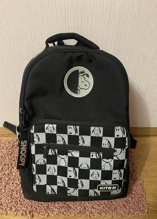 Школьный рюкзак фирмы Kite. Носила дочь один год (5 класс), состояние очень хорошее. Есть нюанс, затерялись сбоку светоотражатели (серые полоскания на фото), но их можно отпороть. Замки целые. Дно целое,трохи потрошкала по бокам кожа (не видно при носке). Ортопедическая спинка, лямки застегиваются между собой.