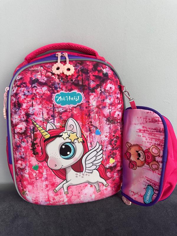 В наличии😍 Очень качественные и удобные каркасные рюкзаки с невероятным дизайном! В комплекте с пеналом. 2 глубоких отделения, лямки мягкие и удобные, есть фиксатор. 2 рабочих ручки сверху. Есть силиконовые подкладки внизу, чтобы ставить рюкзак. Высота 36см, ширина 29см. 1-7 класс Рекомендую☺️