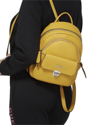Рюкзак Guess оригинал в вместительный и стильный, горчичного цвета. Выполнен из качественной экокожи. 23 см ширина, 29 см высота, 11 см глубина. Долго лежит без дела, носилась раз 5 от силы. Имеет малозаметный нюанс на последнем фото.