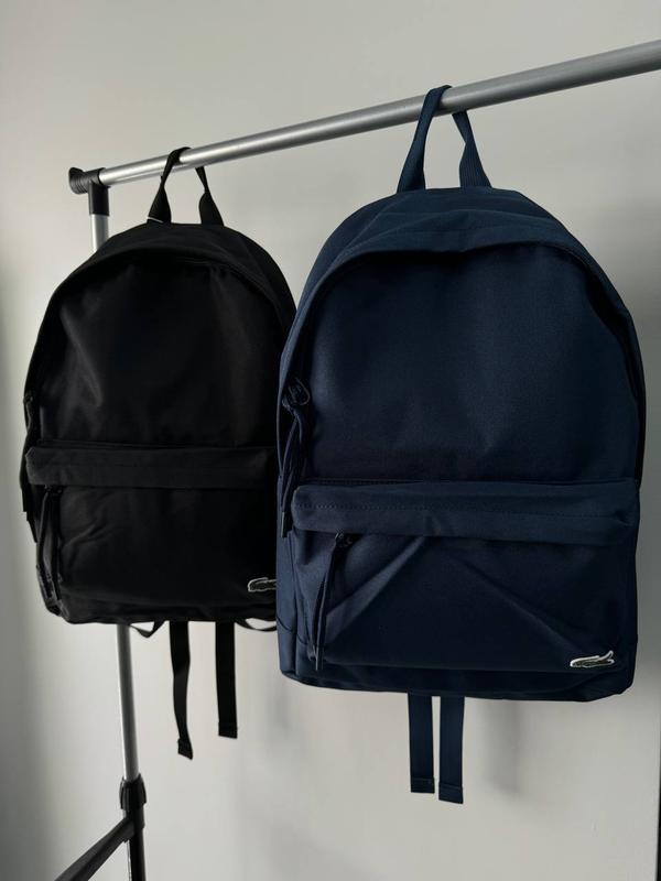 Рюкзак Lacoste Высота 42, ширина 26 Плотный нейлон, есть мембрана, не промокает Переднее отделение на замке Основное на замке + 3 дополнительных кармана внутри Шлейки полностью нейлоновые Есть эргономичная спинка
