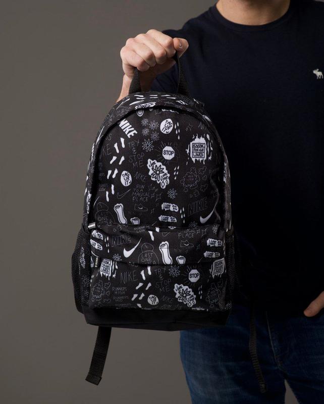 Рюкзак Nike - Цвет: черный - Размер: 41×25×11 см - Одно основное отделение на замке с внутренним карманом - Передний выпуклый карман на замке - Боковые карманы-сетки - Лямки регулируемые: максимальная длина 88 см, минимальная длина 44 см, ширина 7,5 см - Петля для носки в руках