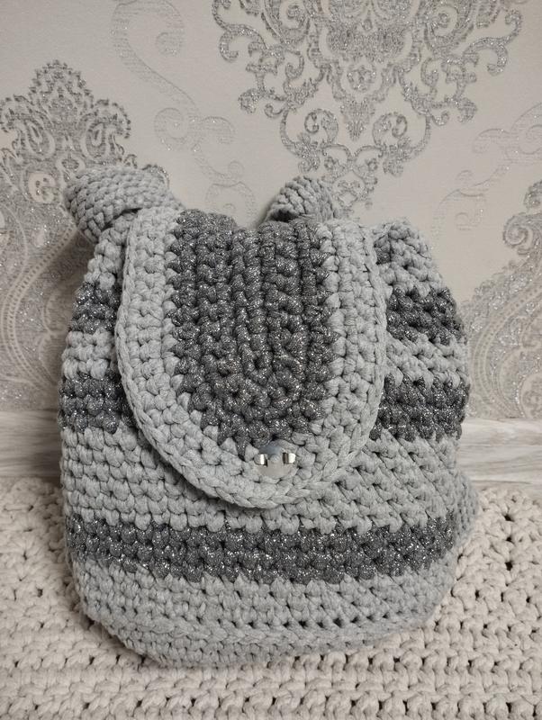связан из трикотажной пряжи (вязаный крючком) Высота 24см Ширина внутренняя 17см Длина 27см