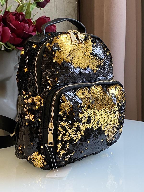 Арт В01 Рюкзак с пайетками в наличии.. Пайетки-перевертыши. Одно отделение, внутри подкладка и карман. Размер высота рюкзака 29 см, ширина 23 см глубина 10 см Черные пайетки меняются на золото