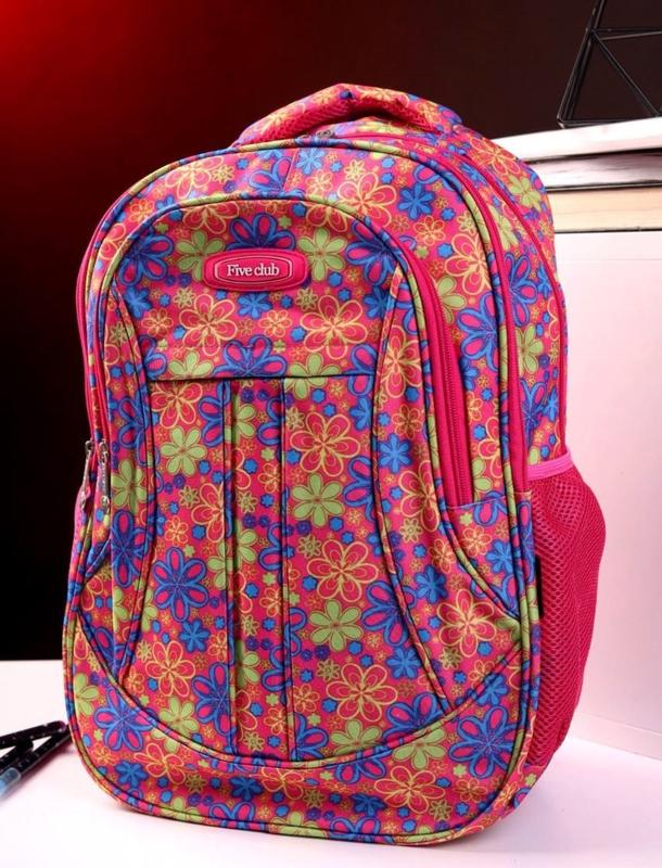 Детский рюкзак для девочки, подойдет для школы, за счет твердой ортопедической спинки будет удобно носить учебники и другие школьные штуки. Есть одно большое основное отделение, и два меньших дополнительных. По бокам карманчики из сеточки для бутылочки или других девчачьих безделушек. Размеры: высота 42см ширина 28см товщина 17см