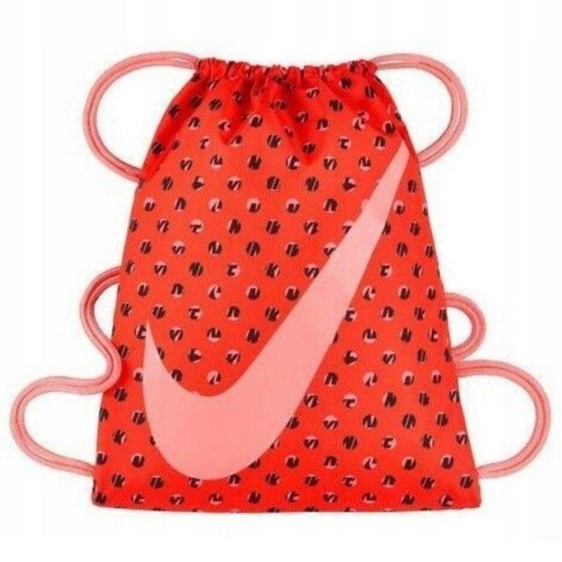Сумка мешок Nike. Состояние в целом идеально, однако есть одна незначительная трещинка на лого (смотрите фото). Цвет красный с моногарами и бежевым лого. Материал - 100% полиэстер, немного отстирывается. Замеры: ширина 33 см, высота 44 см.