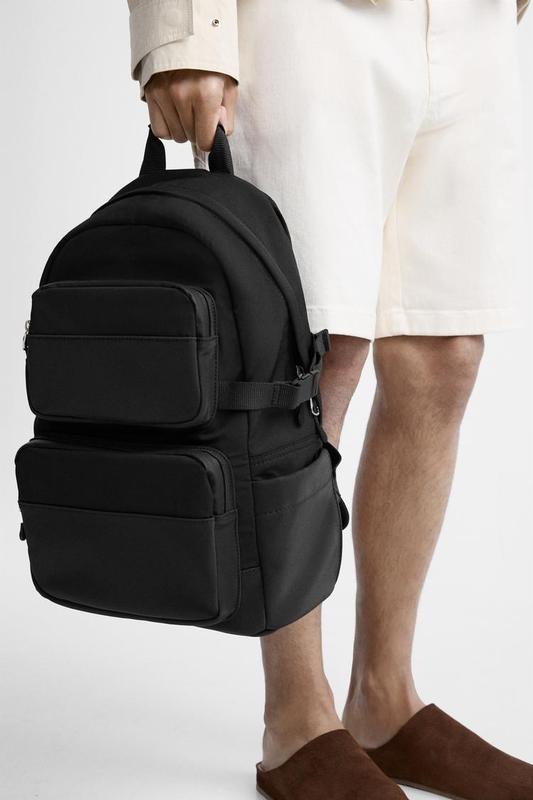Цена 3080 📌olena__beley📌 ОСНОВНА ТКАНИНА 100% полиэстер ВТОРИННЫЙ МАТЕРИАЛ 100% поліуретан СЛИЗОВА ОБОЛОНКА 100% полиэстер НАЧИЛА 100% етилвінілацетат Рюкзак с несколькими карманами. Внешне из технической ткани с прорезиненными деталями. Основное отделение закрывается на молнию. Имеет мягкий внутренний карман для электронных устройств до 13 дюймов и плоский внутренний карман на молнии. Два передних кармана на молнии. Вспомогательные боковые карманы. Две регулируемые боковые ленты. Мягкая спинка с багажным ремнем. Имеет ручку для рук и две регулируемые мягкие ручки для плеча. Высота x ширина x глубина: 43 x 30 x 15 см. Смотрите меньше Черный | 3225/420/800