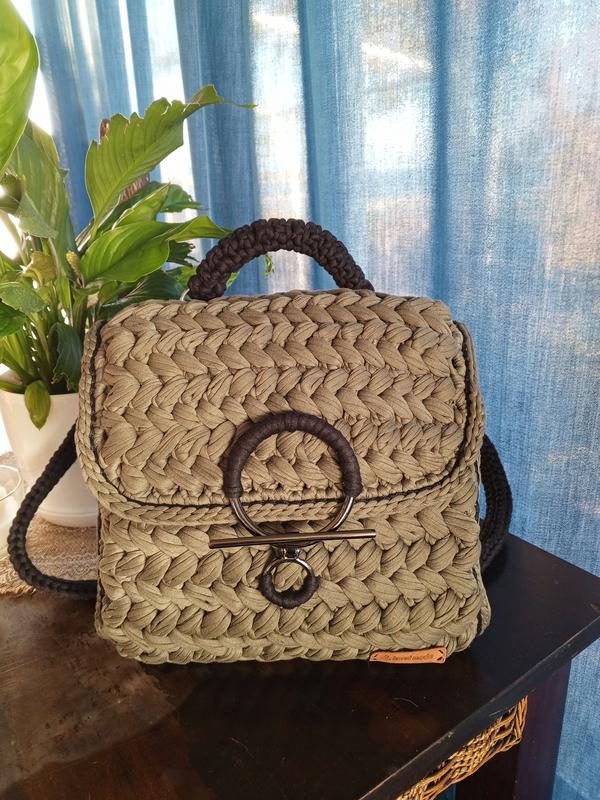 Рюкзак женский. Handmade. Цвет хаки, ремешки и ручка черного цвета. Высота - 26 см, длина -27 см, глубина (толщина) - 8 см. Изделия handmade под заказ.