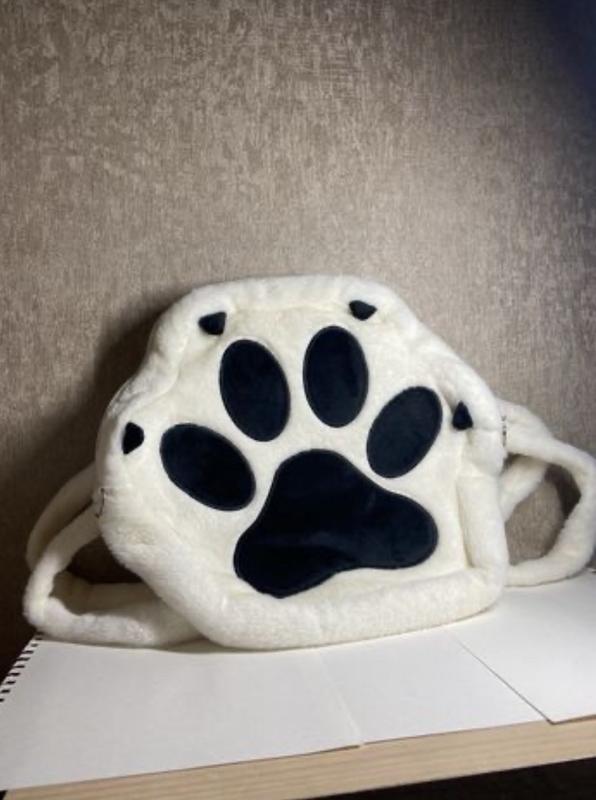 Рюкзак лапка черного и белого цвета.Очень объемный. В рюкзаке есть 1 карман и 1 на снаружи. НОВЕ ! В длину 32см а в ширину 34см