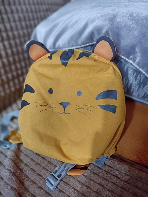 очень милый рюкзак тигрик компактный размер застежка спереди (чтобы шлеи не слетали) отсик для бутылки с водой отличный выбор для первого рюкзака