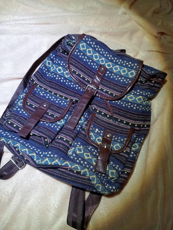 Хороший, оригинальный, вместительный, прочный текстильный рюкзак.Недолик -на одному из карманов не имеет пряжки-гвоздиков.