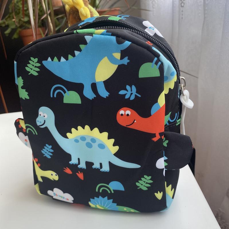 Детский рюкзачок с динозаврами Отлично подойдет в садик и просто на прогулку Качественный материал, лямки регулируются Внутри нет дополнительных карманов 20х17х8