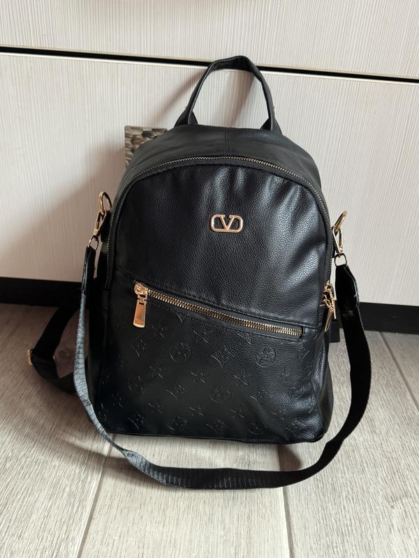 Жіночий рюкзак. До рюкзака йде додатковий ремінь, можна носити як сумку. Всередині велике відділення та кишенька на блискавці. Спереду, ззаду і з боків рюкзака також є різні кишеньки. Розмір: 32 см на 26 см на 12 см