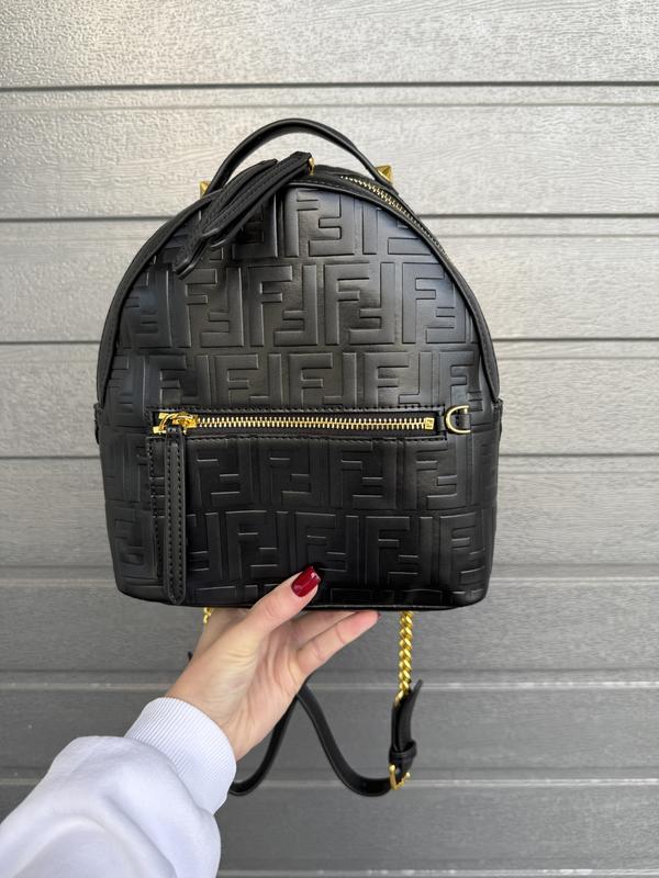 • цена: 4950 грн • Размеры: 21 × 22 × 9 см • Материал: Кожа • Цвет: Черный • Страна: Китай 🇨🇳 • Фурнитура: Золотистая • Логотип: Тисненый узор с монограммой Fendi по всей поверхности • Ремешки: Регулируемые плечевые + верхняя ручка для ношения в руке • Отделение: Основной + фронтальный карман на молнии