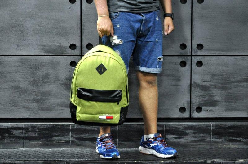чудовий стильний рюкзак, салатового кольору з вставками з еко-шкіри